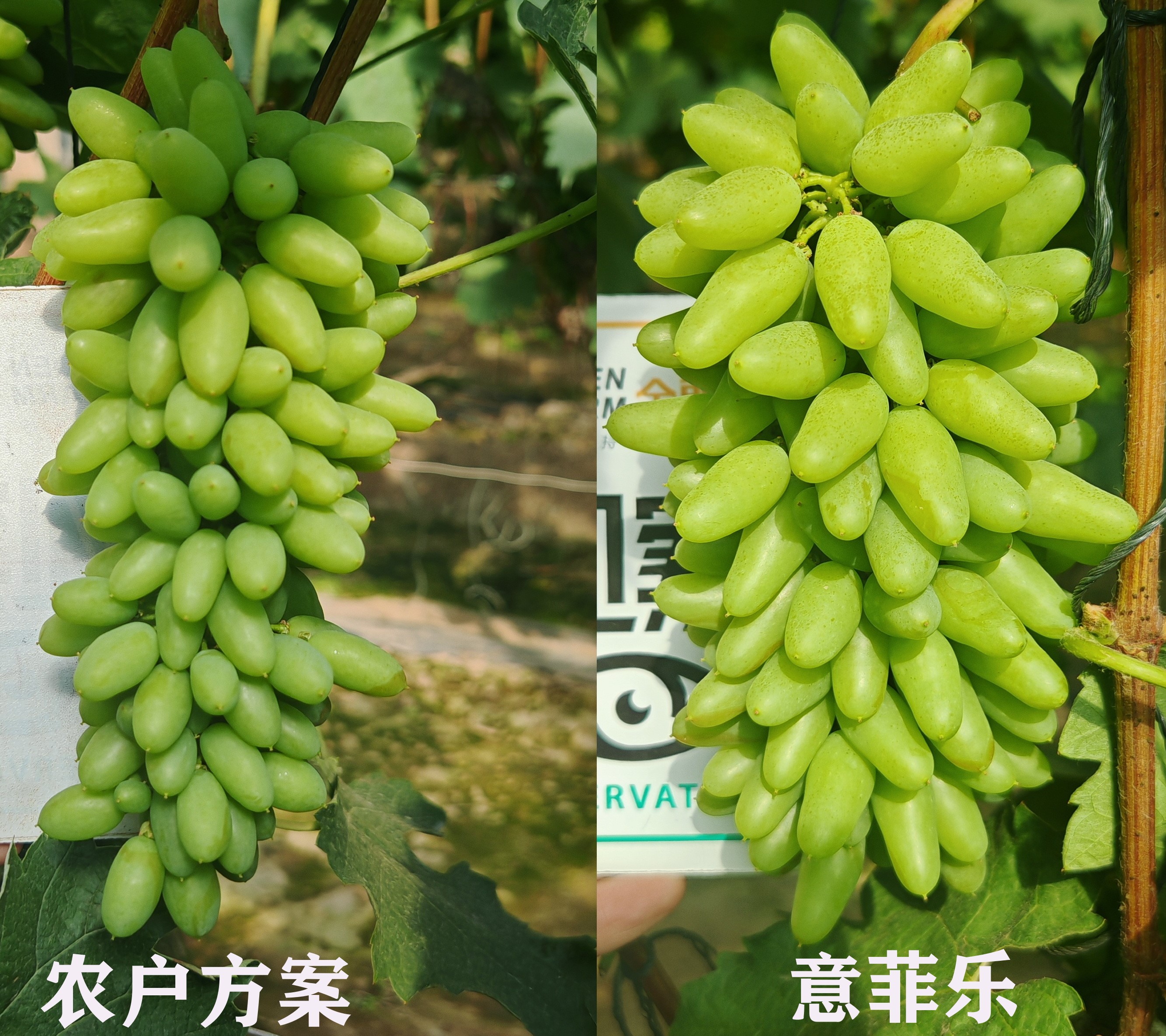 甜度和色泽是评估果实外观品质、商品价值和口感风味的主要因素。其中果实颜色是消费者的直观印象,与果实中花色苷的含量有关,花色苷含量越高说明果实着色越深;甜度则影响果实的风味和口感,甜度越高越受市场认可。生长于大棚内的果疏光照较弱,叶片制造养分能力减弱,果实内部的有机物质积累减少,极易出现成熟度不匀、果皮着色不一致等问题。而8月多数果实进入膨果期和转色增糖期,各果实产区雨水偏多,进一步影响了果实的糖酸比与风味物质积累。 1. 果子不甜不红的根本原因 果树的叶片早衰、阴雨寡照天数多,致使果树光合效率低,碳源不足。果树的根系老化、土壤板结,有机养分的转运及糖的合成通道受阻,致使果实缺乏养分供给。果树遭遇高温、寡照或涝害等逆境胁迫,致使果树吸收的养分用于对抗逆境,能量被提前消耗,果实的营养供给失衡。 1.2 错过糖色积累关键期 很多农户认为“转色增甜就是后期喷药”,转色就是生长后期的事,通常做法是见果微红才急补营养,导致上色慢、颜色浅。其实中期的糖分积累就已开始,并不是在果实后熟期才开始。因为花青素合成通常需约40天时间,而且糖分转运蛋白在膨果期就已通过源叶的光合同化开始累积,后熟期主要是将果实的酸度转换为糖。因此转色期才发力已错过黄金窗口,生长中期才是关键。 1.3 盲目补钾肥,营养配比失衡 有些农户在膨果期通常狂施高钾肥,结果就是叶片发黄卷曲,因为过量的钾肥会出现离子拮抗,反而抑制镁吸收(镁是叶绿素核心),引发“钾镁战争”,致使光合效率下降,糖源供给不足,甚至出现果肉返酸、着色期延迟等现象。 1.4 使用激素催红 部分农户在转色期会喷含乙烯利的“增红剂”,使果实3天内变红,尽管人工激素能强制分解叶绿素,但通常无法显著增加糖分,糖分不足会导致提前落果、返酸发软,软果不耐储运,口感风味淡,收购价格低。 2. 金敦福方案强势破局,三步全搞定 2.1 矿源黄腐酸型氮肥意菲乐®--糖库扩容 稳碳固根 膨果促果 意菲乐®为矿源黄腐酸氮肥,能有效解决“传统氮肥导致贪青晚熟和阻碍转色”的问题,既能膨果又不影响糖分积累。在膨果之前叶面施用能促进果树生长,显著提高叶片叶绿素含量、促进果实着色与成熟。进而改善叶片质量促进果实营养供应,使叶片内积累贮藏的碳水化合物向果实供应,果实也会随之增大;同时提高果实可溶性固形物含量,增加其商品价值。建议膨果期或转色之前250~500 mL/亩1~2次,膨果快不贪青。 图1、2为葡萄的果实和叶片,图3为甜瓜 2.2 单糖诱导剂光力士®--补充快碳 糖色同步积累 糖是细胞的能量来源,也是果实转色物质花青素的合成底物。光力士®的成分为食品级单糖(葡萄糖>15%,果糖>15%),其特有的单糖信号分子可提供作物能直接利用的能量底物,促使叶片光合产物高效转化为果实糖分,实现养分优先向果实分配,快速高效供能补碳。直接弥补低温寡照条件导致的转色停滞、能量积累不足,促进糖分合成与转运以及有机物合成,提升果实糖分积累效率。推荐叶面喷施750-1000 g/亩,稳定花色苷,加速果实转色增甜,提升色泽与风味。增甜快不延迟,阴雨更有效。 2.3 优质氨基酸倍优健®--抗逆保果 双倍防护 倍优健®是单质谷氨酸与天冬氨酸科学复配而成的高含量游离氨基酸产品,氨基酸含量高达650 g/L,易被作物直接吸收,生物利用率可达90%以上。在逆境环境(低温、高温、洪涝等)下可以帮助作物正常生长,能够激活作物免疫系统,强根健株,减少病害发生。尤其针对8月份阴雨天气、雨水多的极端气候环境,减少裂果、实现强效抗逆,让果实转色期少掉链子;促进果型均匀,改善果面色泽,提升果实风味。推荐叶喷600-800倍稀释,实现保花保果、增糖上色、膨果靓果。 百香果施肥处理11天后,果长增长2.65 cm,直径增长2.82 cm;表明倍优健®能促进百香果果实膨大,同时提高亮度。 特别提醒:9月正是转色临界期,选择好产品,收获好果品!请致电400-608-1990,金敦福为您提供专业服务!
