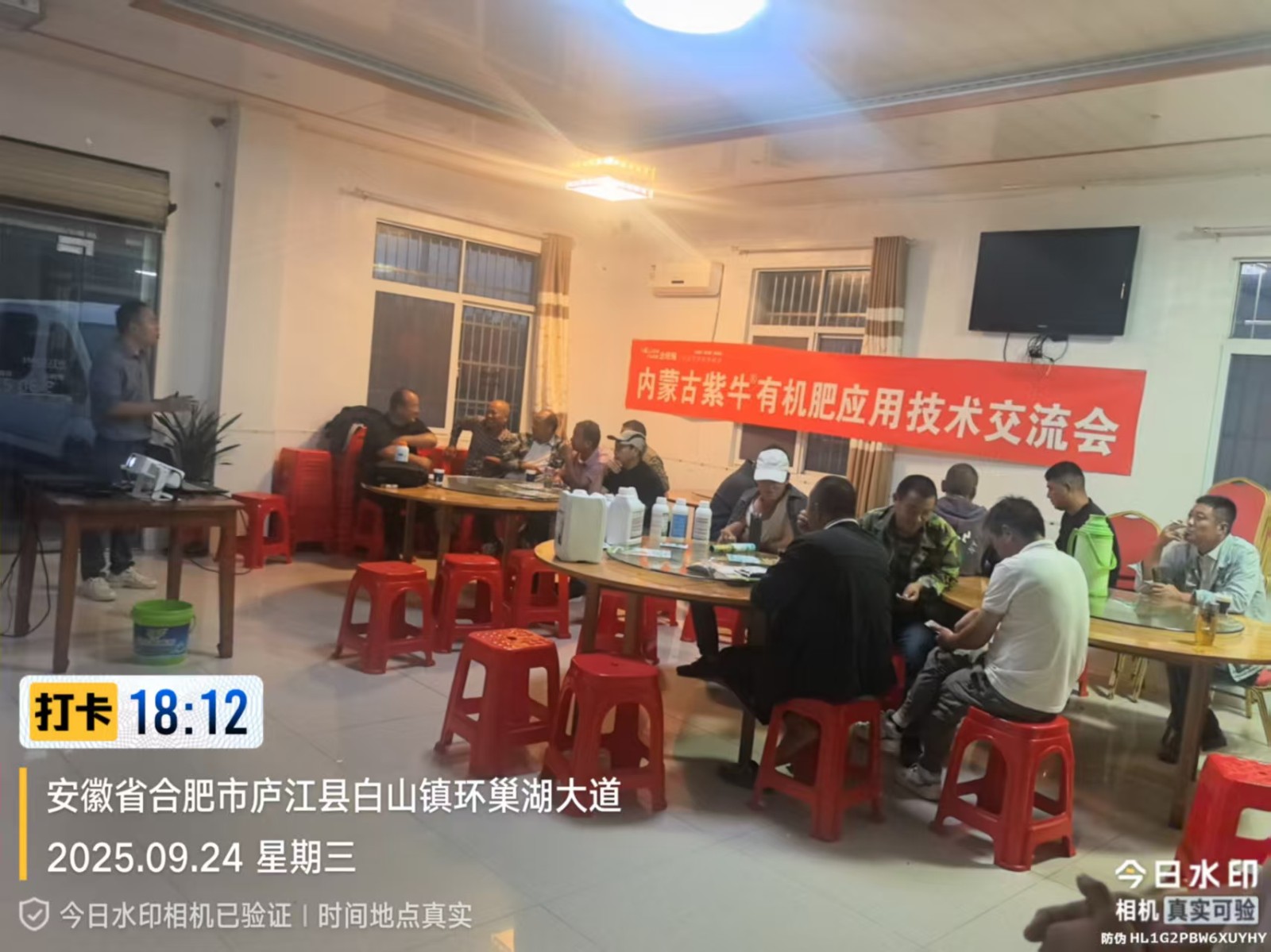 2025年9月24日,合肥百景农资销售有限公司携手金敦福在庐江县白山镇组织召开了“内蒙古紫牛有机肥韭菜种植应用技术交流会”。本次会议邀请了庐江县韭菜种植户30余人。